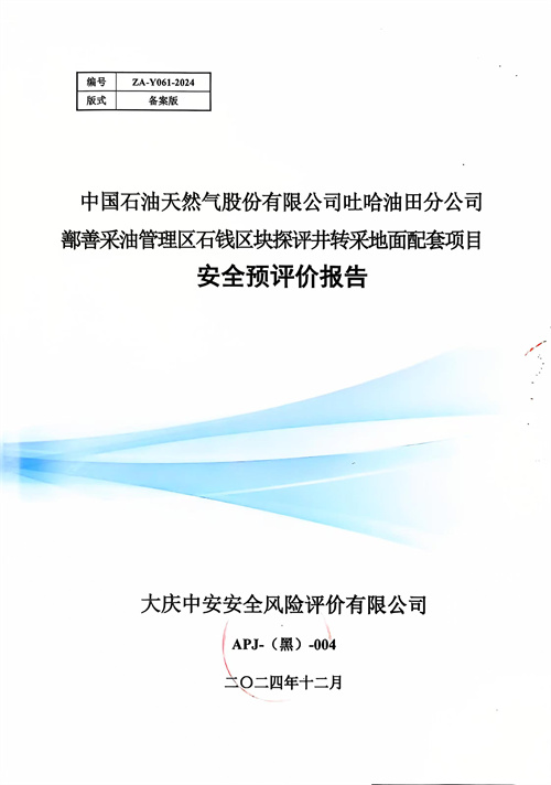 中國石油天然氣股份有限公司吐哈油田分公司鄯善采油管理區(qū)石錢區(qū)塊探評井轉(zhuǎn)采地面配套項目安全預(yù)評價報告