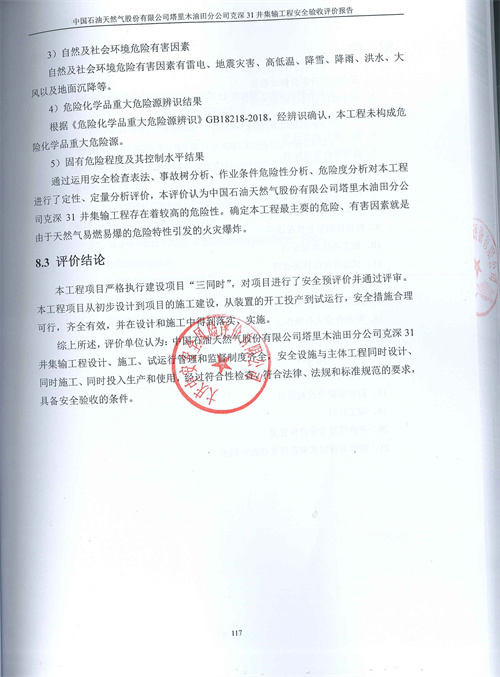 中國石油天然氣股份有限公司塔里木油田分公司克深31井集輸工程安全驗(yàn)收評價報告 |
