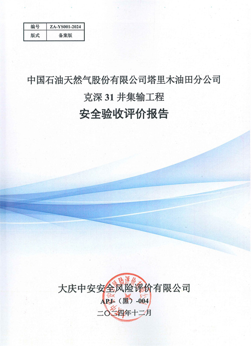 中國石油天然氣股份有限公司塔里木油田分公司克深31井集輸工程安全驗(yàn)收評價報告