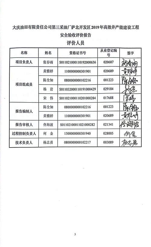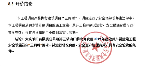 大慶油田有限責任公司第三采油廠薩北開發(fā)區(qū)2019年高效井產(chǎn)能建設工程安全驗收評價報告