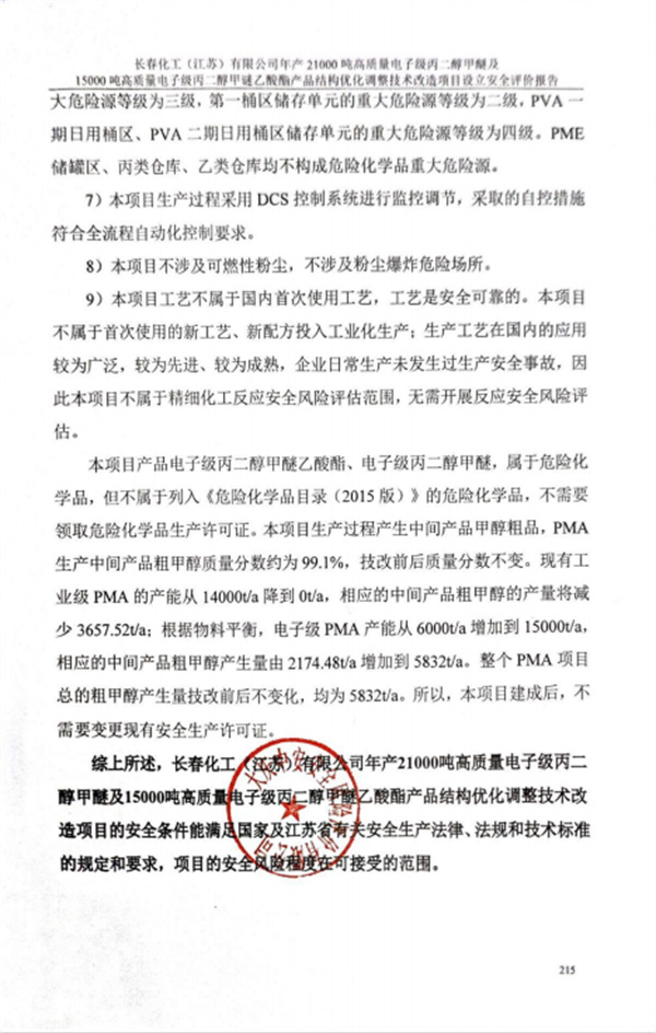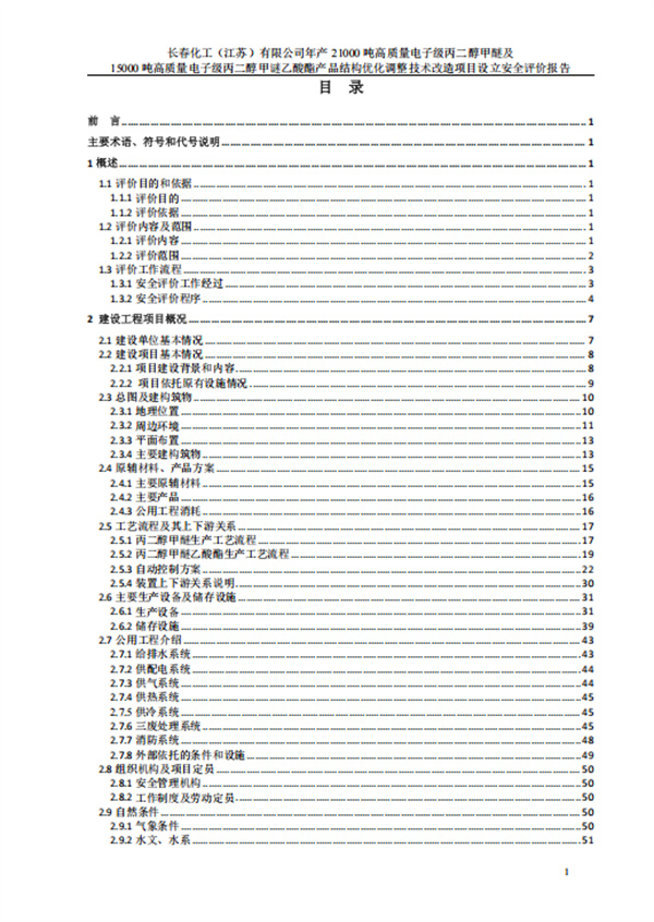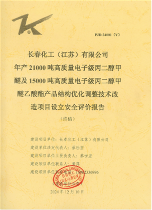 長春化工(江蘇)有限公司年產(chǎn)21000噸高質(zhì)量電子級(jí)丙二醇甲醚及15000噸高質(zhì)量電子級(jí)丙二醇甲醚乙酸酯產(chǎn)品結(jié)構(gòu)優(yōu)化調(diào)整技術(shù)改造項(xiàng)目設(shè)立安全評(píng)價(jià)報(bào)告