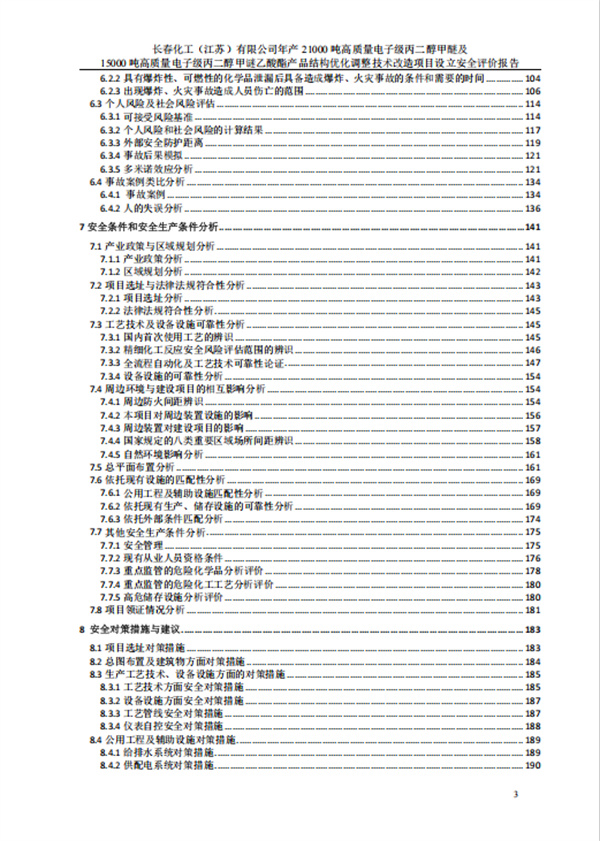 長春化工(江蘇)有限公司年產(chǎn)21000噸高質(zhì)量電子級(jí)丙二醇甲醚及15000噸高質(zhì)量電子級(jí)丙二醇甲醚乙酸酯產(chǎn)品結(jié)構(gòu)優(yōu)化調(diào)整技術(shù)改造項(xiàng)目所涉及到的主要生產(chǎn)裝置、工藝及物料、公用工程及儲(chǔ)運(yùn)設(shè)施、項(xiàng)目安全條件和安全生產(chǎn)條件等進(jìn)行定性定量安全評(píng)價(jià),并對(duì)建設(shè)項(xiàng)目可能存在的危險(xiǎn)、有害因素提出相應(yīng)的對(duì)策措施。 |