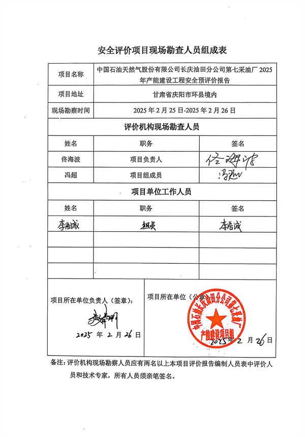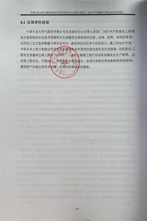 中國石油天然氣股份有限公司長慶油田分公司第七采油廠2025年產(chǎn)能建設(shè)工程安全預(yù)評(píng)價(jià)報(bào)告 |