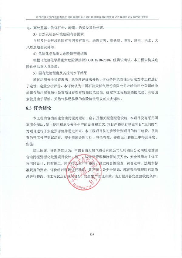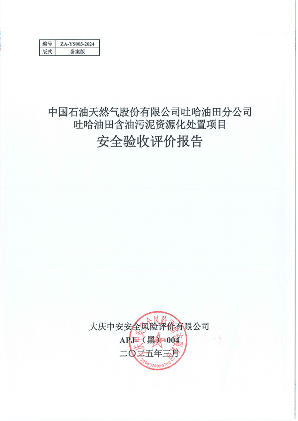 中國石油天然氣股份有限公司吐哈油田分公司吐哈油田含油污泥資源化處置項目安全驗收評價報告 |