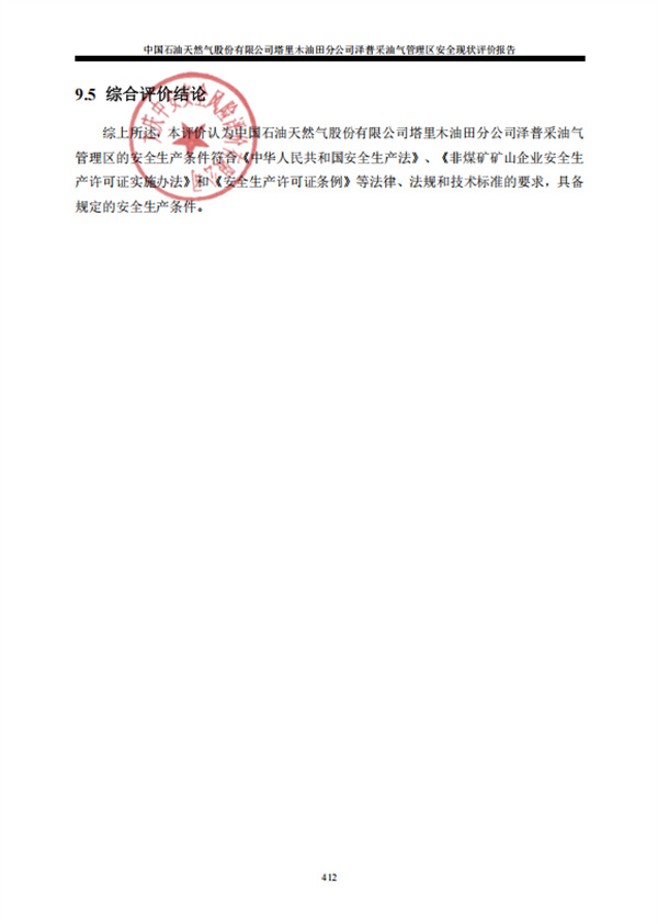 中國(guó)石油天然氣股份有限公司塔里木油田分公司澤普采油氣管理區(qū)安全現(xiàn)狀評(píng)價(jià)報(bào)告 |