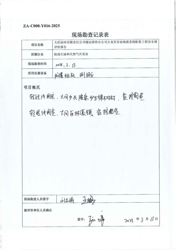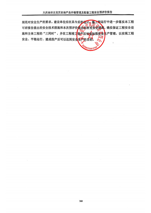大慶油田古龍頁巖油產品外輸管道及配套工程安全預評價報告 |