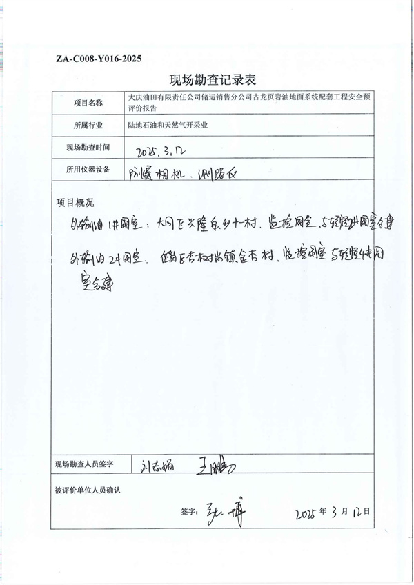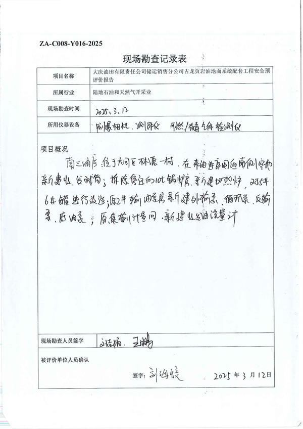 大慶油田古龍頁巖油產品外輸管道及配套工程安全預評價報告