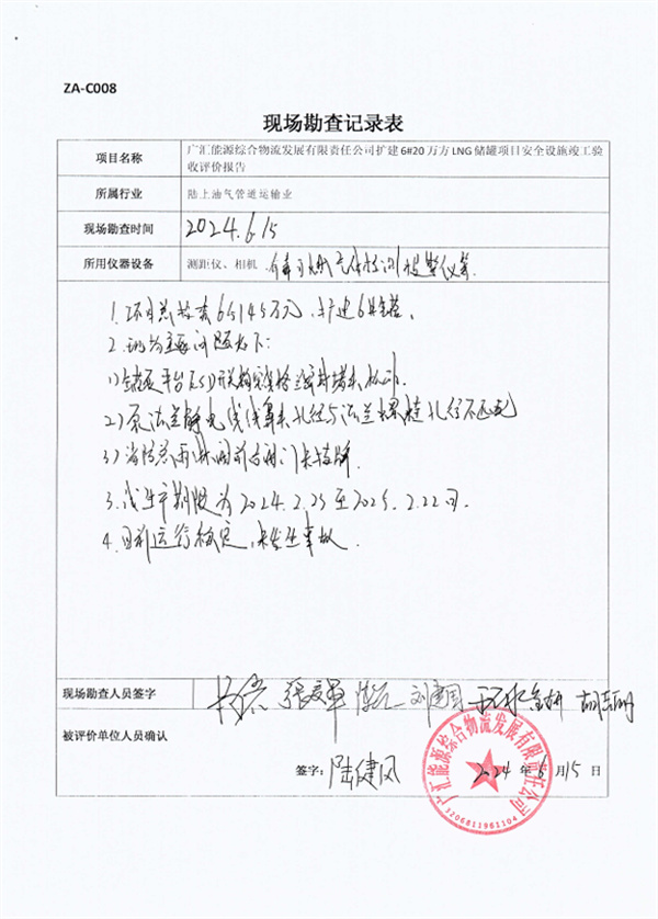 廣匯能源綜合物流發(fā)展有限責(zé)任公司擴建6#20萬m3LNG儲罐項目安全設(shè)施竣工驗收評價報告
