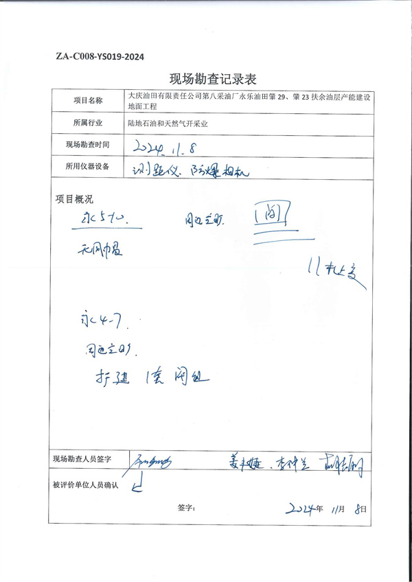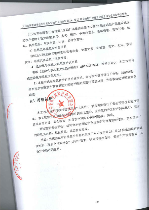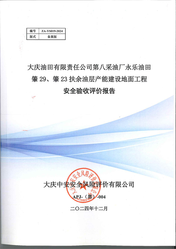 大慶油田有限責任公司第八采油廠永樂油田肇29、肇23扶余油層產(chǎn)能建設(shè)地面工程安全驗收評價報告 |