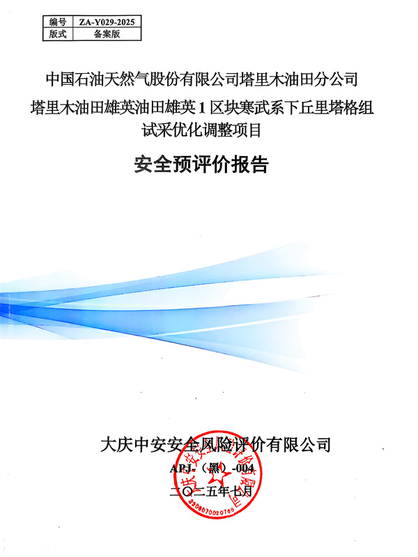 中國石油天然氣股份有限公司塔里木油田分公司塔里木油田雄英油田雄英1區(qū)塊寒武系下丘里塔格組試采優(yōu)化調(diào)整項目安全預(yù)評價報告 |