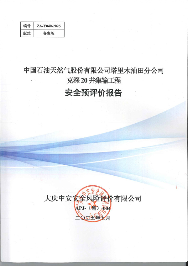 中國石油天然氣股份有限公司塔里木油田分公司克深20井集輸工程安全預(yù)評價報告