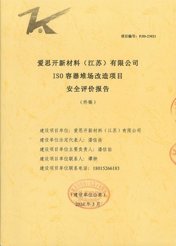 愛思開新材料(江蘇)有限公司ISO容器堆場改造項目安全評價報告 |