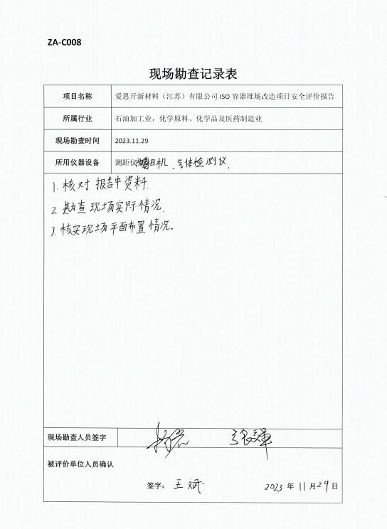 愛思開新材料(江蘇)有限公司ISO容器堆場改造項目安全評價報告