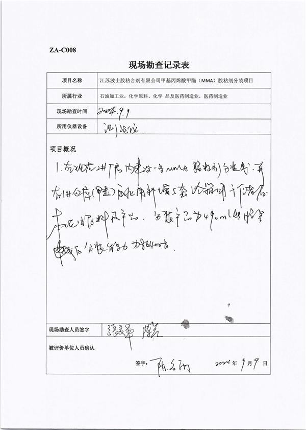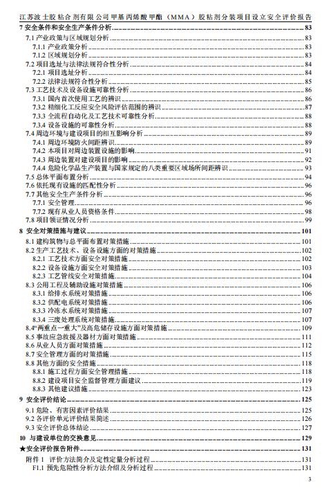 甲基丙烯酸甲酯(MMA)膠粘劑分裝項目設立安全評價報告 |