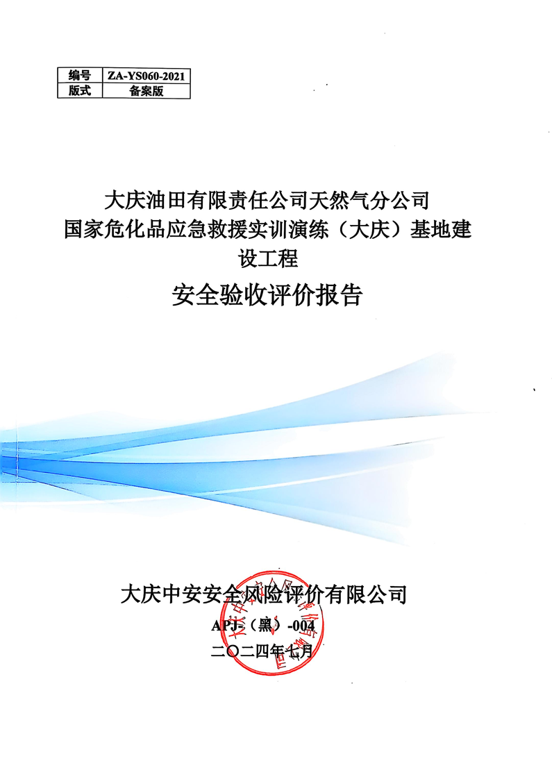 大慶油田有限責(zé)任公司天然氣分公司國(guó)家危化品應(yīng)急救援實(shí)訓(xùn)演練(大慶)基地建設(shè)工程安全驗(yàn)收評(píng)價(jià)報(bào)告