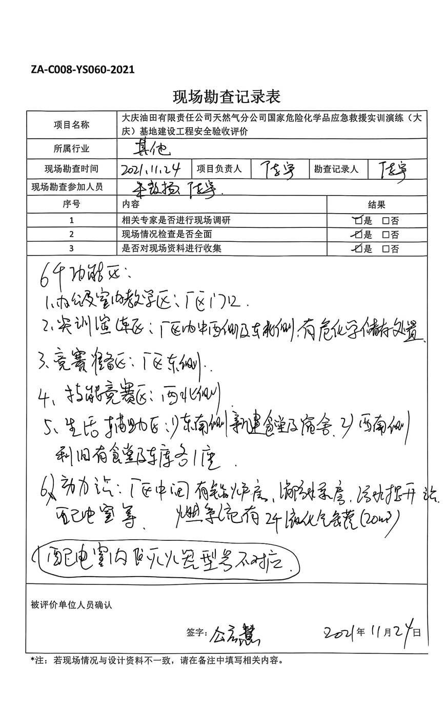 大慶油田有限責(zé)任公司天然氣分公司國(guó)家?;窇?yīng)急救援實(shí)訓(xùn)演練(大慶)基地建設(shè)工程安全設(shè)施符合“三同時(shí)”要求,安全生產(chǎn)管理有效,具備安全驗(yàn)收的條件。 |