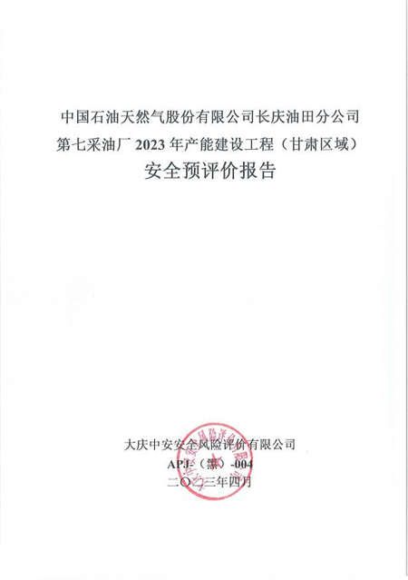 中國石油天然氣股份有限公司長慶油田分公司第七采油廠2023年產(chǎn)能建設(shè)工程(甘肅區(qū)域)安全預(yù)評價(jià) |