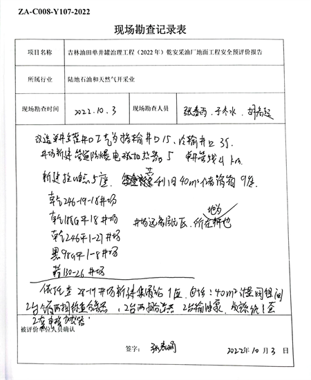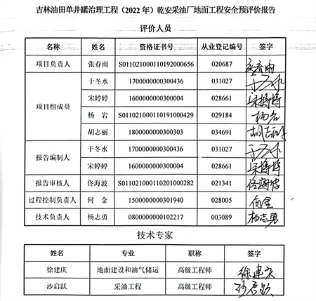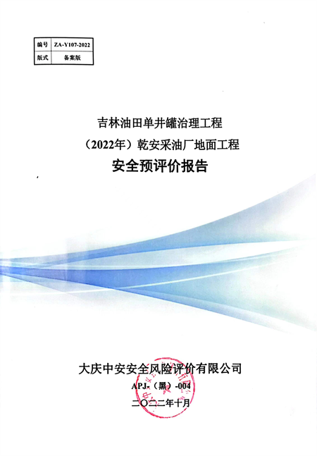 吉林油田單井罐治理工程(2022年)乾安采油廠地面工程安全評價報告