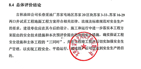 吉林油田公司長春采油廠蘇家屯地區(qū)蘇家20區(qū)塊蘇家3-33、蘇家16-29兩口井試采工程地面工程方案符合相關(guān)法律、法規(guī)及標準規(guī)范對安全生產(chǎn)的要求。建設(shè)單位應(yīng)在其今后的設(shè)計、施工和運行中進一步落實本工程方案提出的安全技術(shù)措施和本次預(yù)評價提出的補充安全措施,確實保證工程安全設(shè)施和主體工程的“三同時”,并在工程竣工投產(chǎn)后切實加強安全生產(chǎn)管理,以實現(xiàn)工程安全、平穩(wěn)運行,建成投產(chǎn)后可以達到安全生產(chǎn)的目的。 |