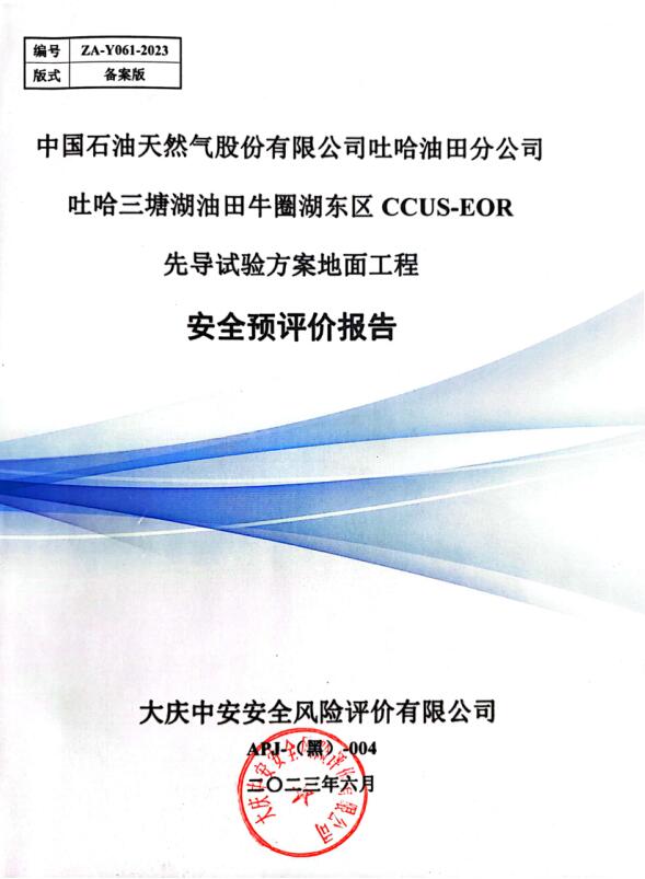 中國石油天然氣股份有限公司吐哈油田分公司吐哈三塘湖油田牛圈湖東區(qū)CCUS-EOR先導(dǎo)試驗(yàn)方案地面工程安全預(yù)評價(jià) |