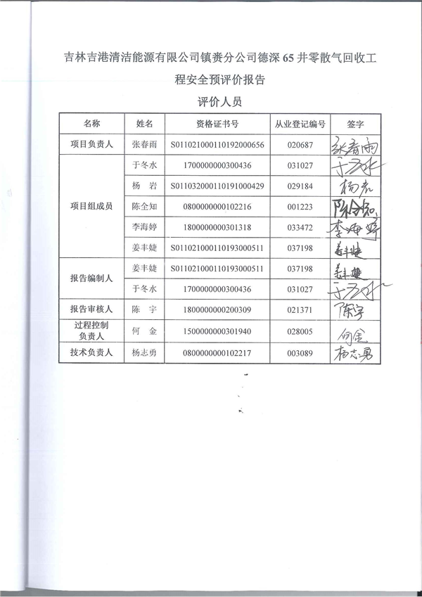 吉林吉港清潔能源有限公司鎮(zhèn)賚分公司德深65井零散氣回收工程安全預評價報告 |