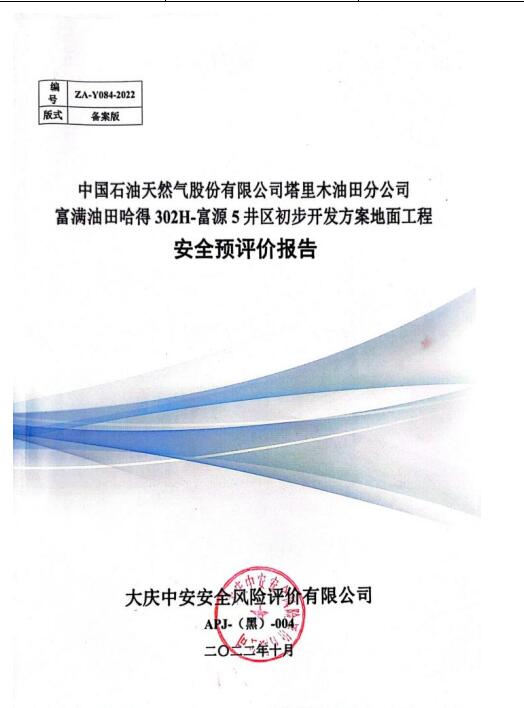 中國石油天然氣股份有限公司塔里木油田分公司富滿油田哈得302H-富源5井區(qū)初步開發(fā)方案地面工程安全評(píng)價(jià)報(bào)告