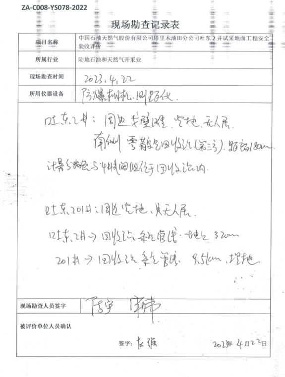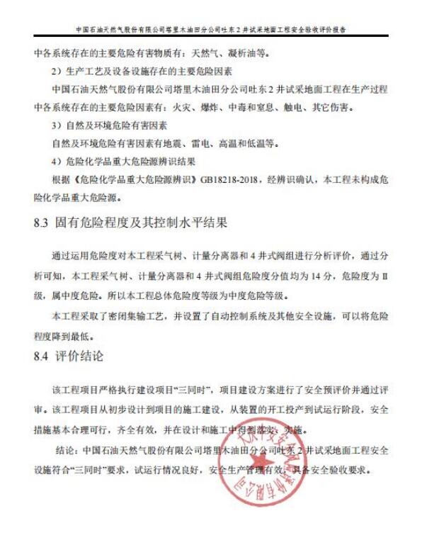 中國(guó)石油天然氣股份有限公司塔里木油田分公司吐東2井試采地面工程安全驗(yàn)收評(píng)價(jià)