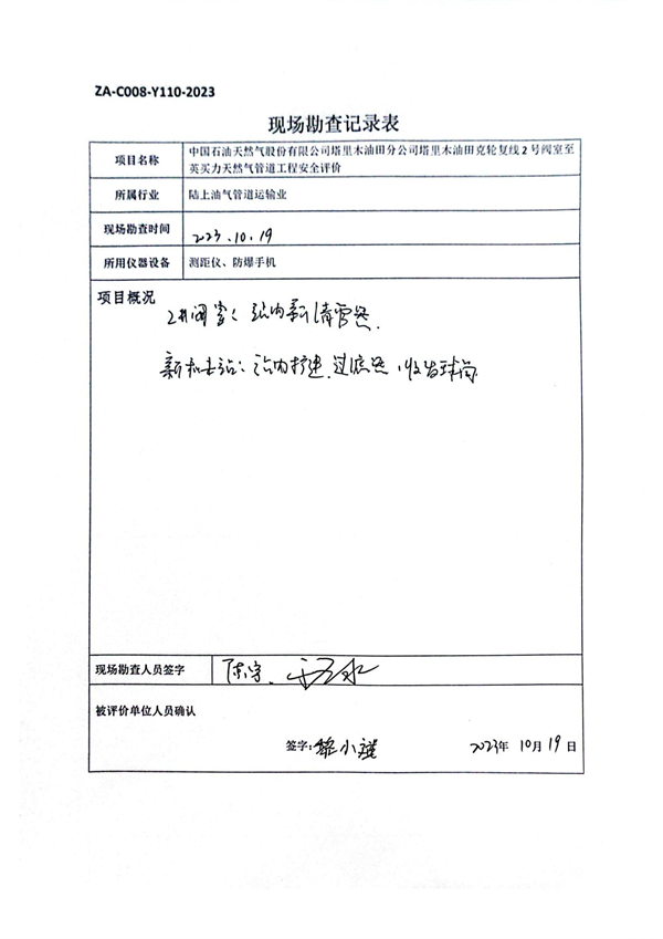 塔里木油田克輪復(fù)線2號(hào)閥室至英買力天然氣管道工程安全預(yù)評(píng)價(jià)報(bào)告 |