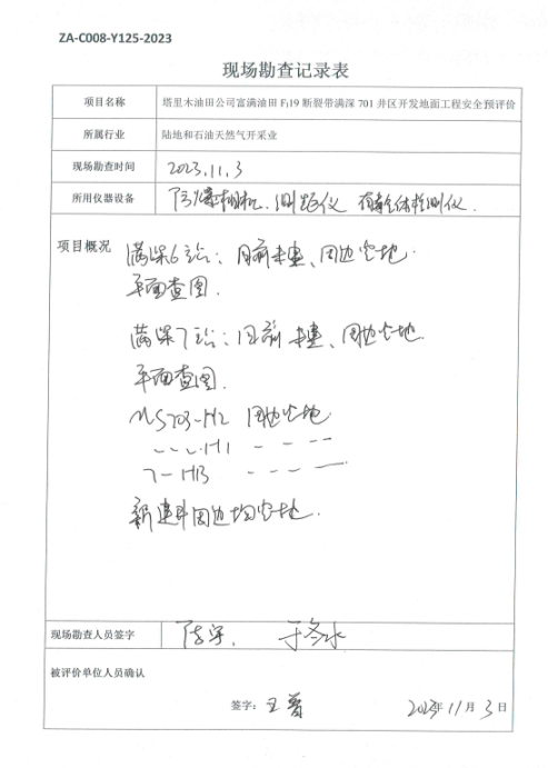 塔里木油田公司富滿油田FI19斷裂帶滿深701井區(qū)開(kāi)發(fā)地面工程安全驗(yàn)收評(píng)價(jià)報(bào)告 |