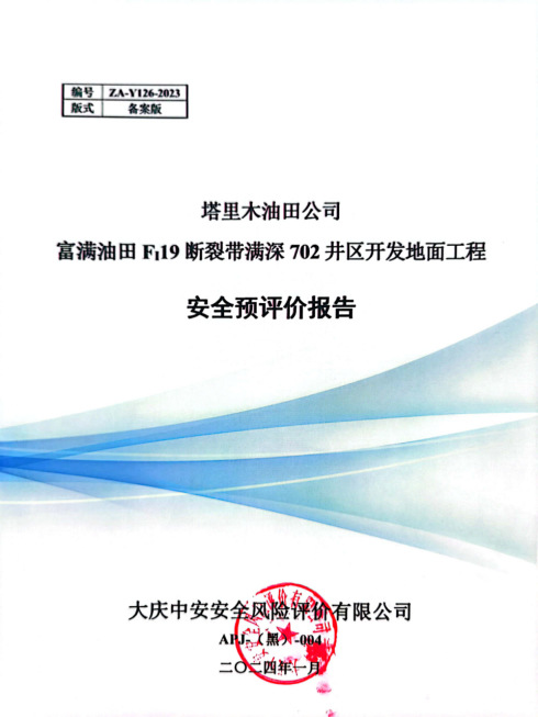 塔里木油田公司富滿油田FI19斷裂帶滿深702井區(qū)開發(fā)地面工程安全驗收評價報告