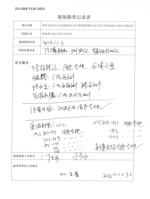 塔里木油田公司富滿油田FI19斷裂帶滿深702井區(qū)開發(fā)地面工程安全驗收評價報告 |