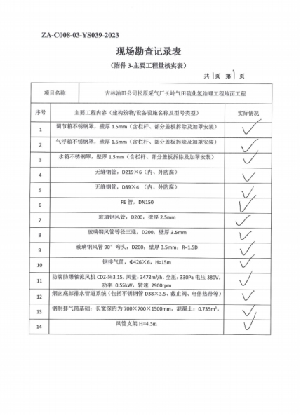吉林油田公司松原采氣廠長(zhǎng)嶺氣田硫化氫治理工程地面工程安全驗(yàn)收評(píng)價(jià)報(bào)告 |