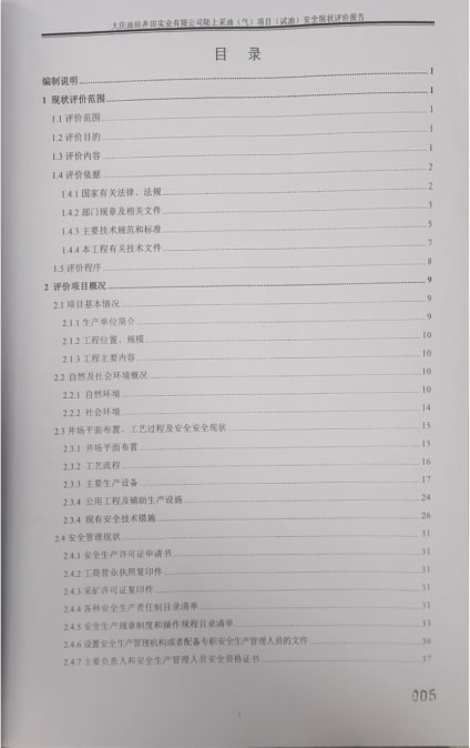 大慶油田井田實(shí)業(yè)有限公司陸上采油(氣)項(xiàng)目(試油)安全現(xiàn)狀評(píng)價(jià)報(bào)告 |