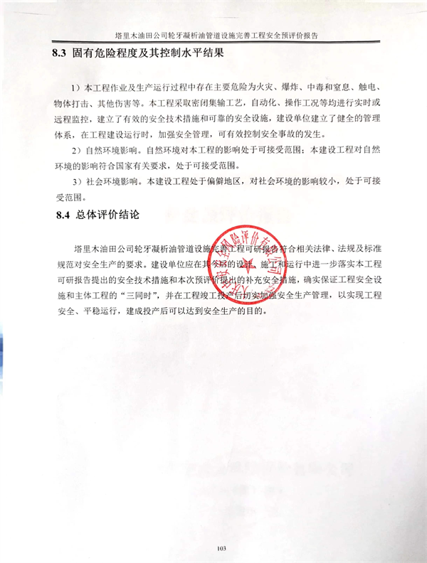 塔里木油田公司輪牙凝析油管道設(shè)施完善工程安全預(yù)評(píng)價(jià)報(bào)告