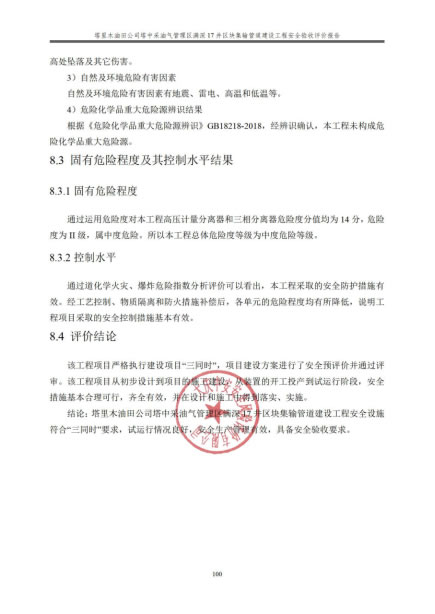 塔里木油田公司塔中采油氣管理區(qū)滿深17井區(qū)塊集輸管道建設(shè)工程安全驗收評價報告 |