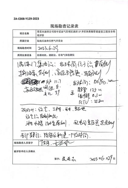 塔里木油田公司塔中采油氣管理區(qū)滿深17井區(qū)塊集輸管道建設(shè)工程安全設(shè)施符合“三同時”要求,試運行情況良好,安全生產(chǎn)管理有效,具備安全驗收要求。 |