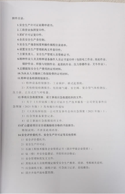 大慶鉆探工程公司鉆井生產(chǎn)技術(shù)服務(wù)一公司于2020年09月1日取得黑龍江省應(yīng)急管理廳頒發(fā)的非煤礦山企業(yè)安全生產(chǎn)許可證延期換證,許可范圍:鉆井,許可證編號(hào):黑FM安許證字[2020]DQ0022號(hào)。自2020年安全生產(chǎn)許可證延期換證至今,近三年未發(fā)生安全生產(chǎn)傷人、亡人事故。通過以上分析評(píng)價(jià),本報(bào)告認(rèn)為大慶鉆探工程公司鉆井生產(chǎn)技術(shù)服務(wù)一公司固井施工項(xiàng)目符合安全生產(chǎn)條件的要求。 |