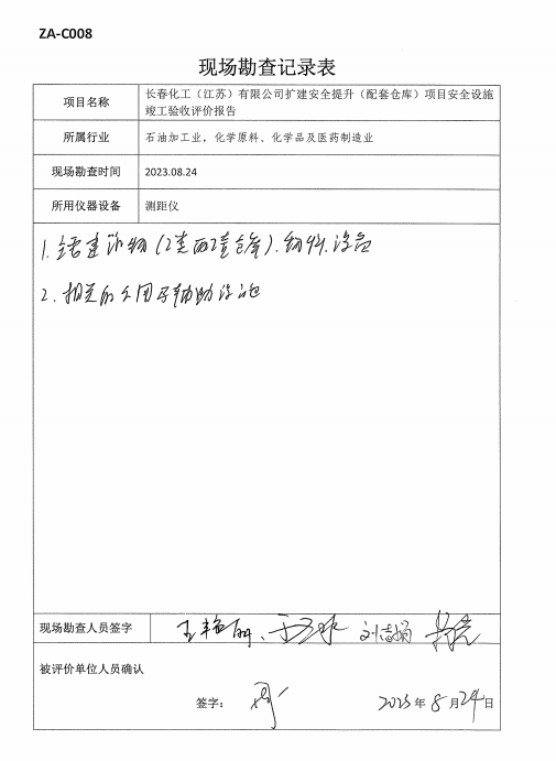 長春化工(江蘇)有限公司擴(kuò)建安全提升(配套倉庫)項(xiàng)目安全設(shè)施竣工驗(yàn)收評價報告 |