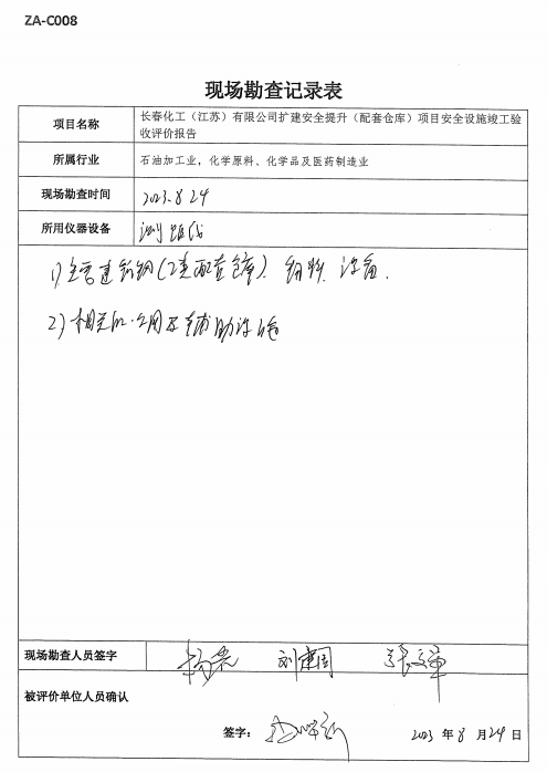 長春化工(江蘇)有限公司擴(kuò)建安全提升(配套倉庫)項(xiàng)目安全設(shè)施符合設(shè)計要求,具備安全設(shè)施竣工驗(yàn)收條件。 |