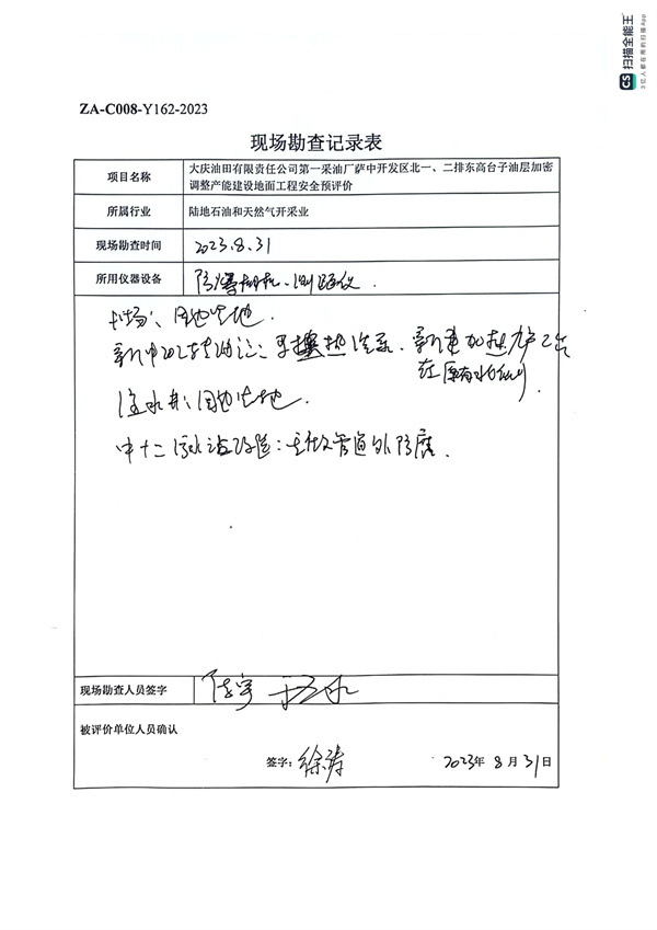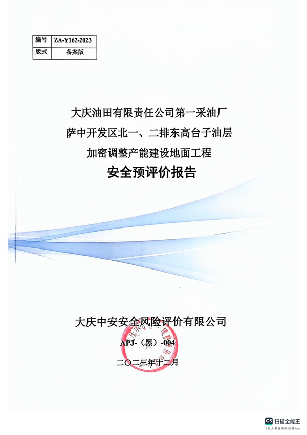 大慶油田有限責任公司第一采油廠薩中開發(fā)區(qū)北一、二排東高臺子油層加密調(diào)整產(chǎn)能建設地面工程安全預評價