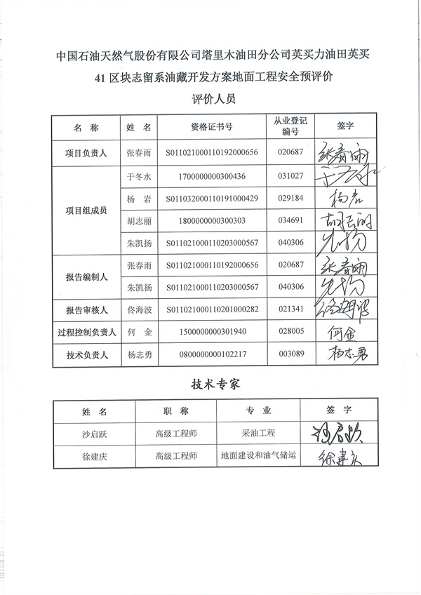 中國石油天然氣股份有限公司塔里木油田公司英買力油田英買41區(qū)塊志留系油藏開發(fā)方案地面工程安全預(yù)評(píng)價(jià)報(bào)告 |