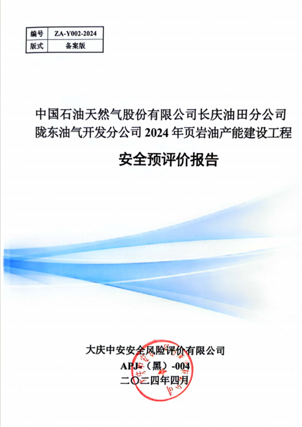 中國石油天然氣股份有限公司長慶油田分公司隴東油氣開發(fā)分公司2024年頁巖油產(chǎn)能建設(shè)工程安全預(yù)評價報告