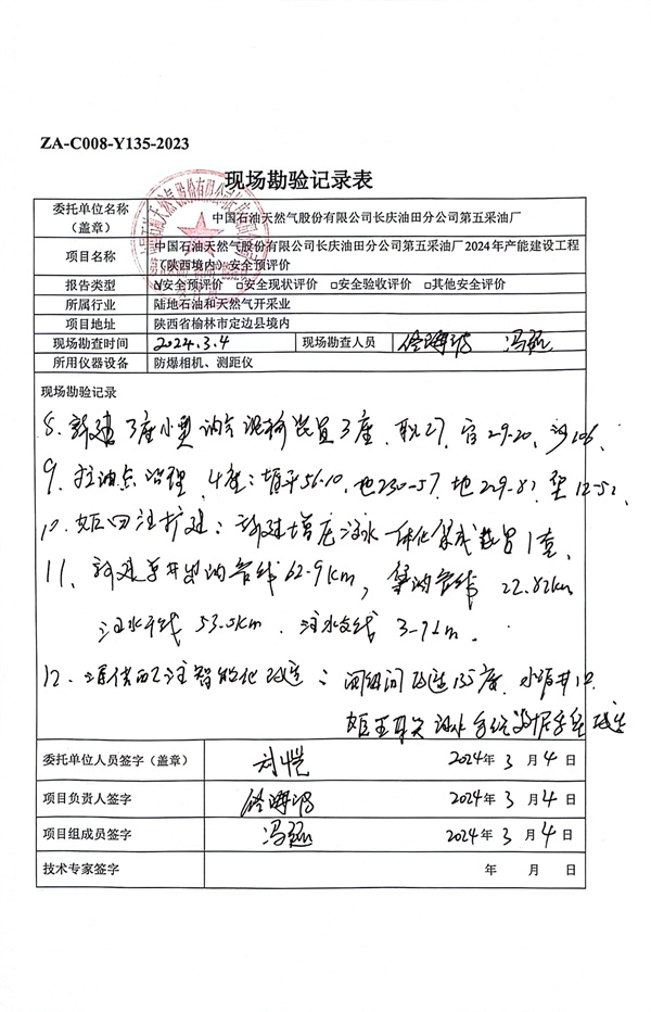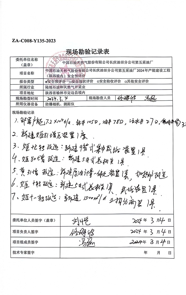 中國石油天然氣股份有限公司長慶油田分公司第五采油廠2024年產(chǎn)能建設(shè)工程(陜西區(qū)域)安全預評價