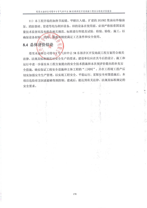 塔里木油田公司塔中I號(hào)氣田中古58東部井區(qū)開發(fā)地面工程方案符合相關(guān)法律、法規(guī)及標(biāo)準(zhǔn)規(guī)范對(duì)安全生產(chǎn)的要求。建設(shè)單位應(yīng)在其今后的設(shè)計(jì)、施工和運(yùn)行中進(jìn)一步落實(shí)本工程方案提出的安全技術(shù)措施和本次預(yù)評(píng)價(jià)提出的補(bǔ)充安全措施,確實(shí)保證工程安全設(shè)施和主體工程的“三同時(shí)”,并在工程竣工投產(chǎn)后切實(shí)加強(qiáng)安全生產(chǎn)管理,以實(shí)現(xiàn)工程安全、平穩(wěn)運(yùn)行,建成投產(chǎn)后可以達(dá)到安全生產(chǎn)的目的。 |