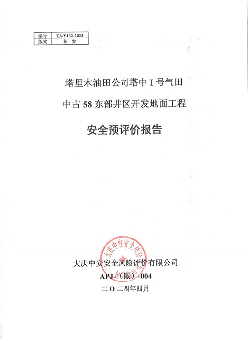 塔里木油田公司塔中I號(hào)氣田中古58東部井區(qū)開發(fā)地面工程安全預(yù)評(píng)價(jià)報(bào)告