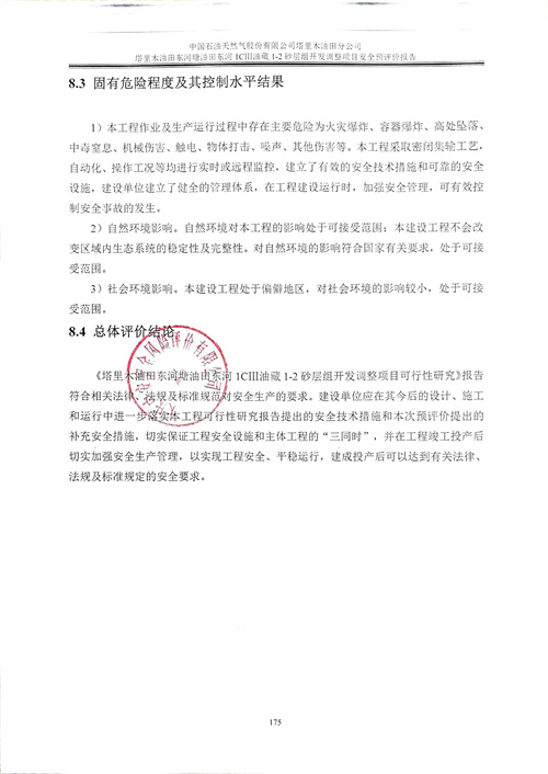中國石油天然氣股份有限公司塔里木油田分公司塔里木油田東河塘油田東河1CⅢ油藏1-2砂層組開發(fā)調(diào)整項目安全預(yù)評價報告