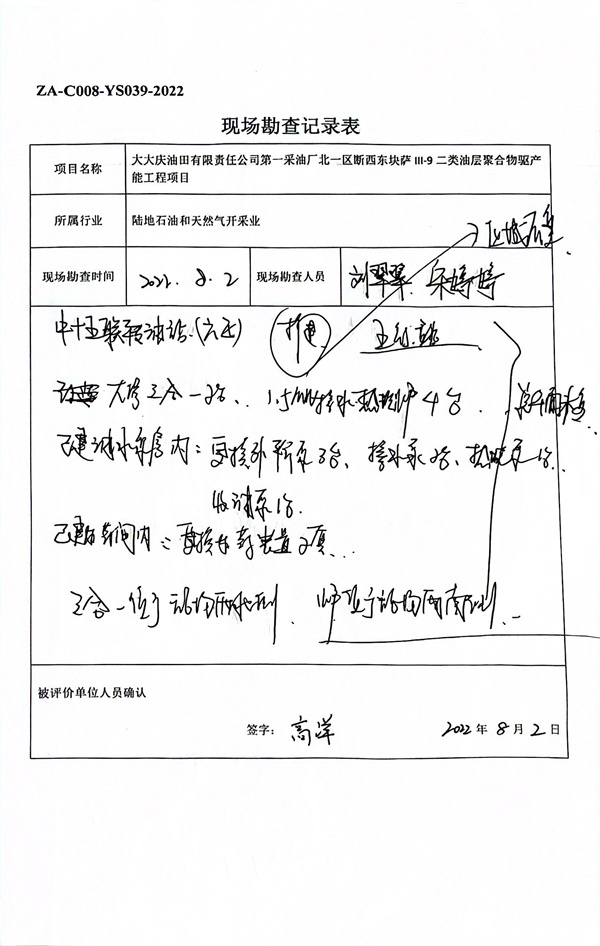 大慶油田有限責(zé)任公司第一采油廠北一區(qū)斷西東塊薩II1-9二類油層聚合物驅(qū)產(chǎn)能工程安全驗(yàn)收評(píng)價(jià) |