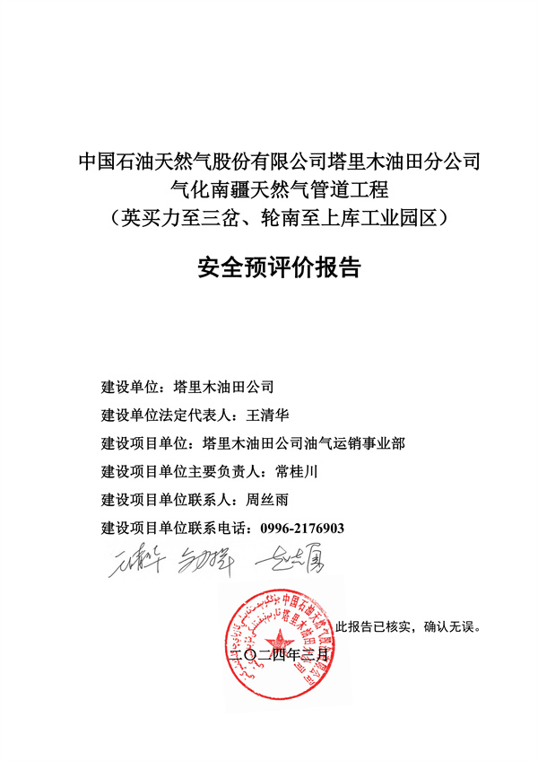 中國石油天然氣股份有限公司塔里木油田分公司氣化南疆天然氣管道工程(英買力至三岔、輪南至上庫工業(yè)園區(qū))安全預(yù)評價報告 |