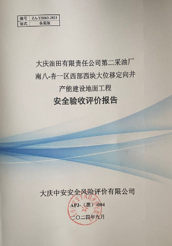 大慶油田有限責(zé)任公司第二采油廠南八-杏一區(qū)西部西塊大位移定向井產(chǎn)能建設(shè)地面工程安全驗(yàn)收評(píng)價(jià)報(bào)告