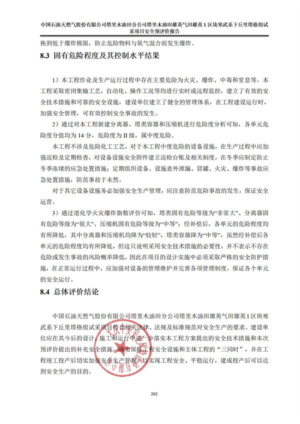 中國石油天然氣股份有限公司塔里木油田分公司塔里木油田雄英氣田雄英1區(qū)塊寒武系下丘里塔格組試采項(xiàng)目安全預(yù)評價(jià)報(bào)告 |
